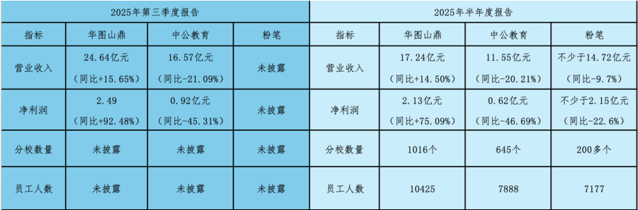 2025年華圖山鼎、中公教育、粉筆主要經營數據