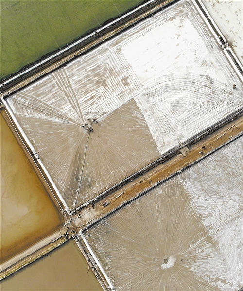 8月18日,鹽業工人在江蘇連云港市工業投資公司鹽田里進行扒鹽作業。近日,連云港市萬畝鹽田進入秋季扒鹽作業期,工人們加緊進行秋鹽采收和堆放。王 春攝(中經視覺)
