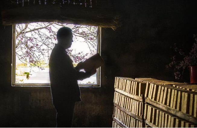 每年芒種前后,是黃淮小麥收獲的季節。但是新收的小麥不會直接用來做曲,還要經過夏、秋、冬三季的存放,等到第二年桃花盛開的時候再用來做曲。這是釀制美酒必須的等待,這也是古井貢酒制曲的傳統。這樣的傳統也已傳承了上千年。