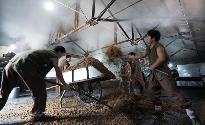 曲為酒之骨。中國白酒用曲發酵。曲定酒型,基本決定了一瓶美酒的香味風格。古井貢酒做曲用的小麥,來自于他們自有的小麥原糧基地——安徽省蚌埠市的龍亢農場。這是華北平原與黃淮平原的結合處,大地一片平坦,蒼茫而遼闊,是中國優質小麥種植區域,已有數千年的小麥種植歷史。包括茅臺、五糧液等酒企在內,都在這里開辟了釀酒專用小麥基地。