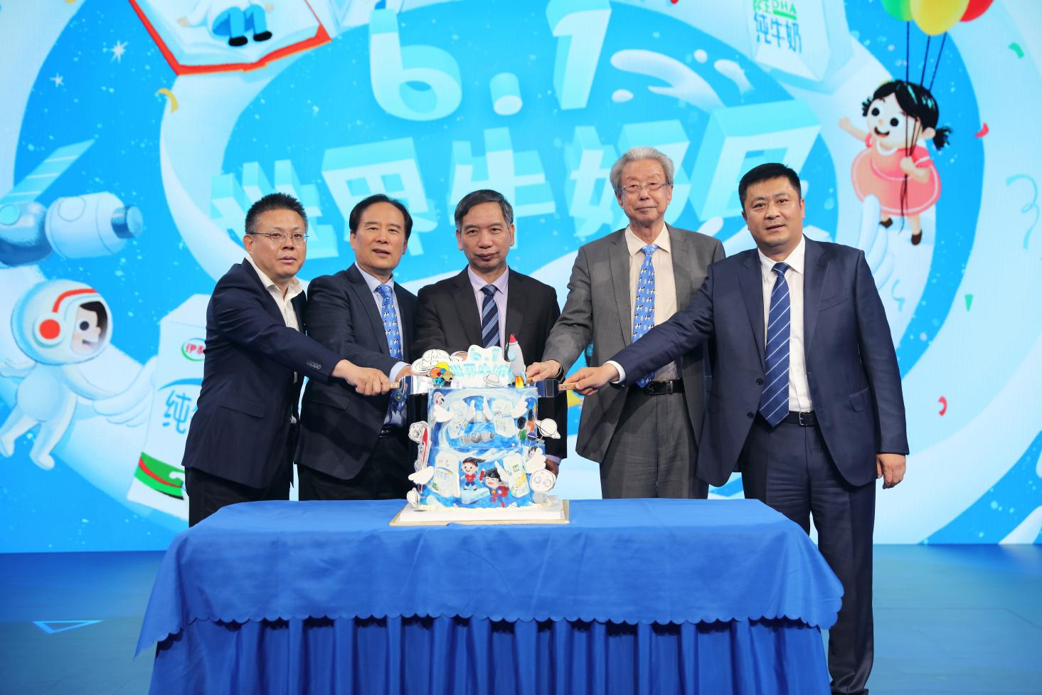 (左起)新華網總裁助理徐明偉,中國乳制品工業協會副理事長劉超,中國疾控中心營養與健康所所長丁剛強,國際乳品聯合會中國國家委員會名譽主席、中國乳制品工業協會原理事長宋昆岡,伊利集團執行總裁劉春喜一起慶?!笆澜缗D倘铡?/p>