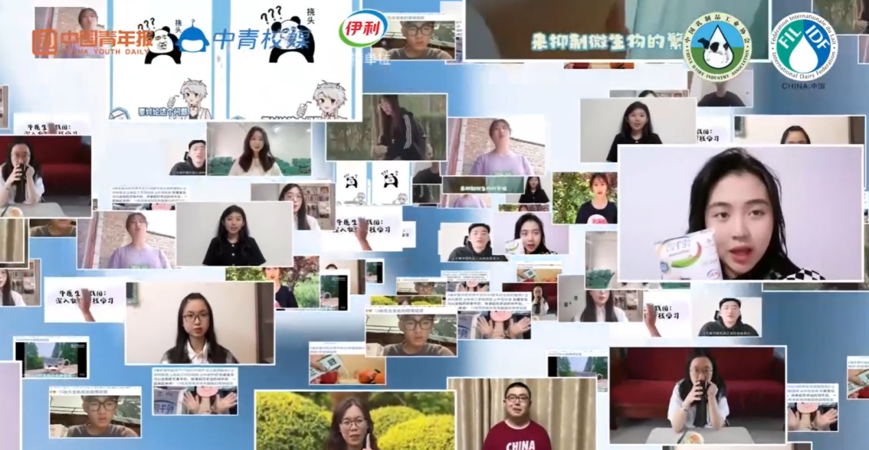 直播活動后半場,還舉行了“青年眼中的世界牛奶日”短視頻征集活動頒獎儀式,中國乳制品工業協會公布視頻征集活動獲獎名單,100位大學生獲得“世界牛奶日公益宣傳大使”稱號?;顒蝇F場還播放了來自南昌工學院陳敏希、沈陽藥科大學張丹、中國地質大學武漢喬宇晗、中國民航大學張菁美制作的四個代表優秀作品。
