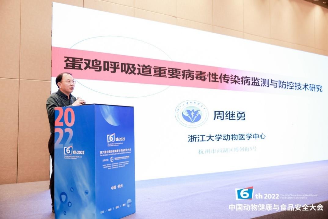 浙江大學動物醫學中心主任周繼勇分享了《蛋雞呼吸道重要病毒傳染病監測與防控技術研究》。