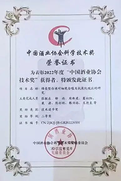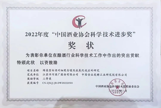 洋河股份技術成果“綿柔型白酒對細胞自噬及抗氧化效應的研究”,榮獲“中國酒業協會科學技術獎”;“基于高通量測序技術解析中高溫制典細菌群落的演替規律”研究論文,榮獲“中國酒業協會科技進步優秀論文獎”;