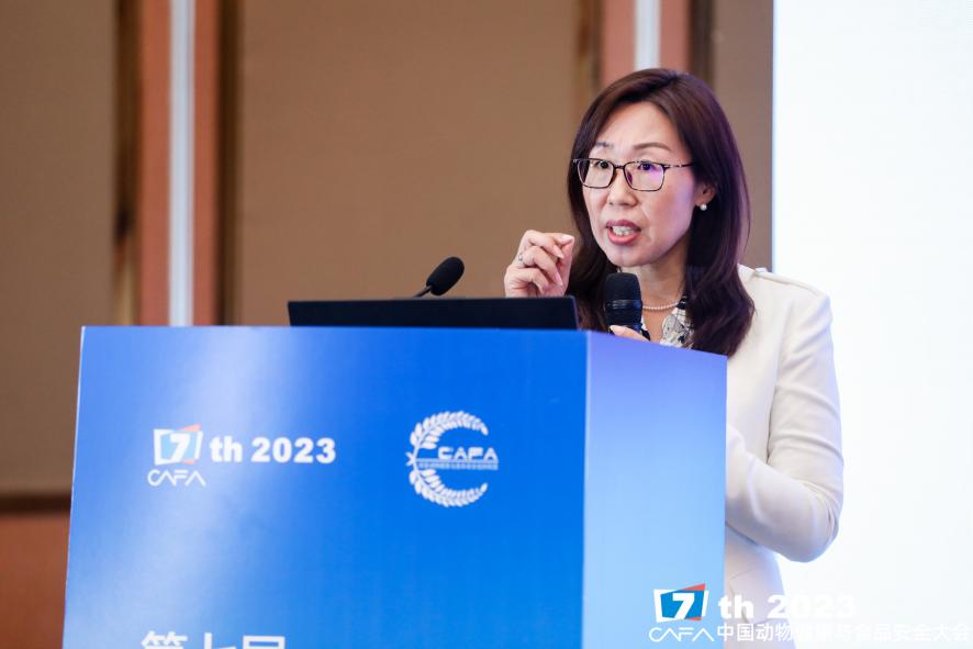 四川省蛋雞工程技術研究中心主任、四川圣迪樂村生態食品股份有限公司技術總監齊莎日娜現場分享了《ω-3多不飽和脂肪酸強化蛋雞技術研發與推廣》, 首先介紹了四川圣迪樂村生態食品股份有限公司概況、研究與開發。從產品開發和推廣介紹了ω-3多不飽和脂肪酸強化雞蛋的產品標準、生產技術規范、參考攝入量、消費情況。