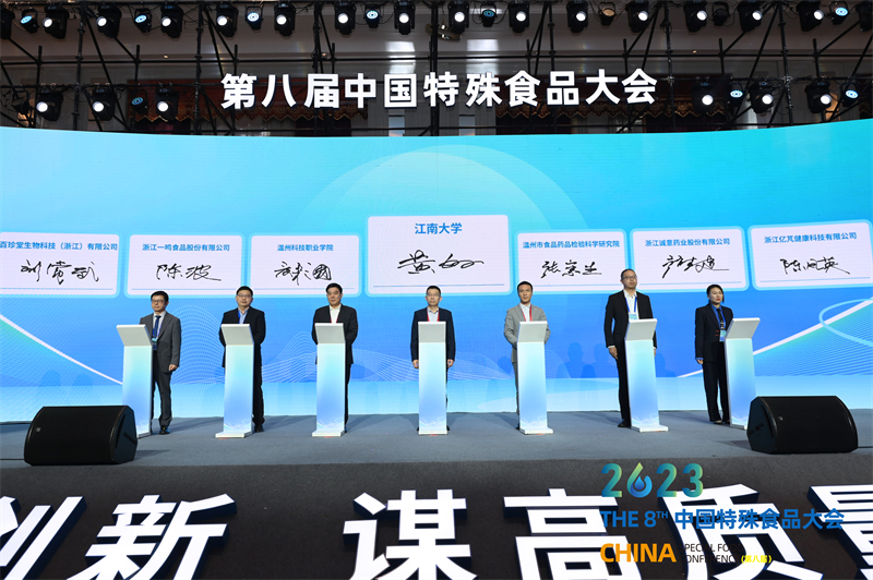 中國特殊食品大會既是產業的盛會,也是學術的盛會,因此也承載了通過學術交流進行產學研對接的任務。江南大學與溫州科技職業學院、溫州市食品藥品檢驗科學研究院、浙江誠意藥業股份有限公司、浙江一鳴食品股份有限公司、百珍堂生物科技(浙江)有限公司、浙江億芃健康科技有限公司6家企事業單位建立了合作意向。