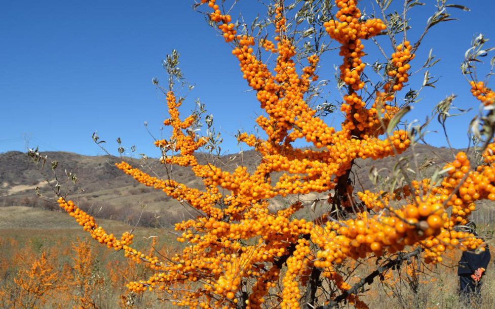 沙棘,是全球公認的經濟型防護植物,被聯合國環境開發署譽為生態建設領域的先鋒樹種。以其耐寒、耐旱、耐鹽堿的特性,在生態修復方面有著重要作用。