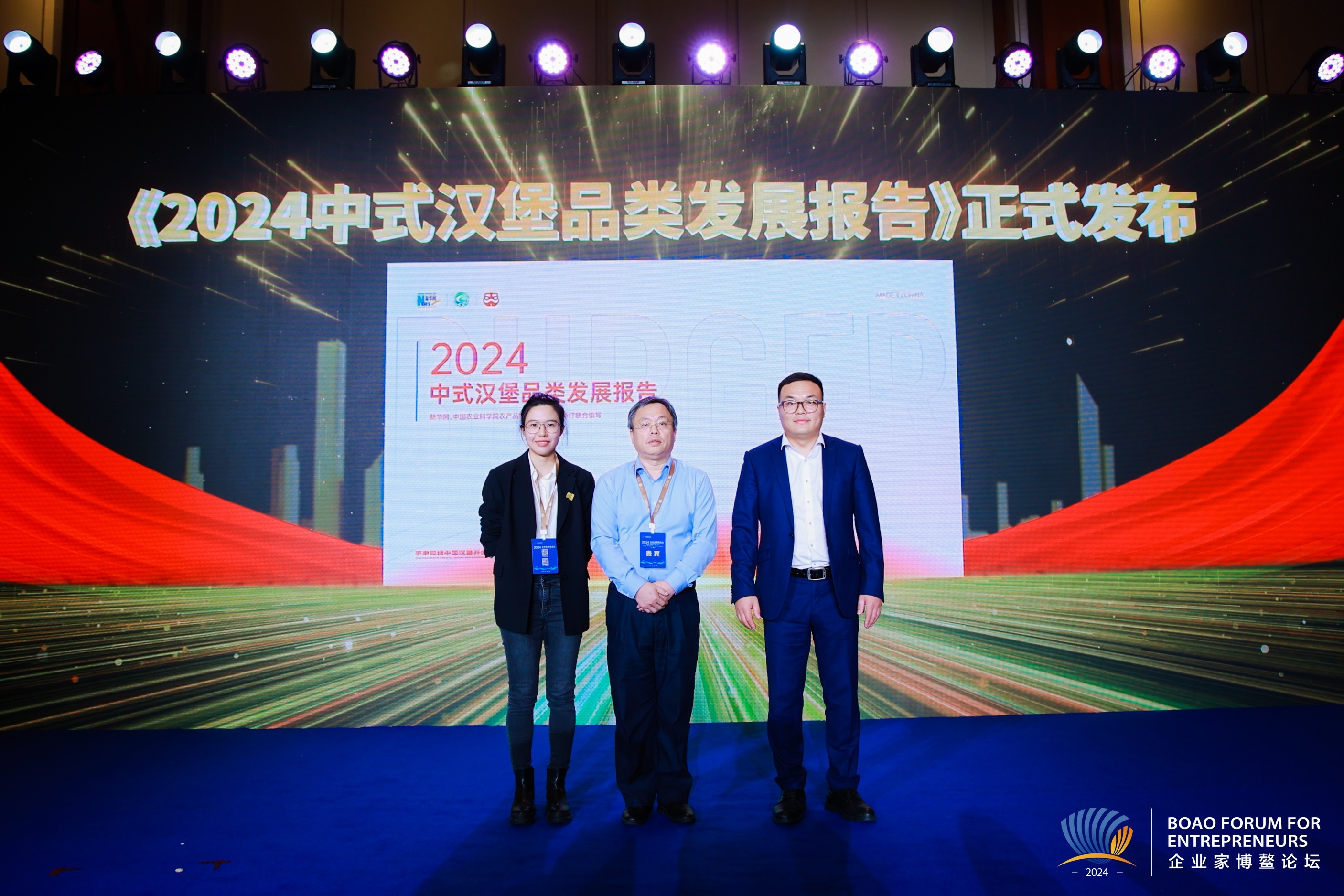 會上,《2024中式漢堡品類發展報告》正式發布。中國農業科學院農產品加工研究所所長王鳳忠,塔斯汀公司事務副總裁默楊,新華網產經中心副總經理兼食品、旅游事業部總經理劉洋共同完成《2024中式漢堡品類發展報告》發布環節。
