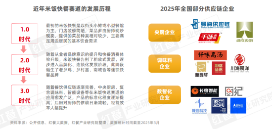 這些米飯快餐連鎖品牌的快速發展離不開中央廚房、調味料企業、數智化企業、冷鏈物流等上游供應鏈的支持,尤其是復合調味料與智能設備企業。在明廚亮檔日漸成為餐飲新時尚的背景下,復合調味料為米飯快餐品牌提供了標準化的解決方案;智能設備則通過自動化、智能化的操作,降低了后廚對廚師技術水平的依賴,提高出餐效率和穩定性。