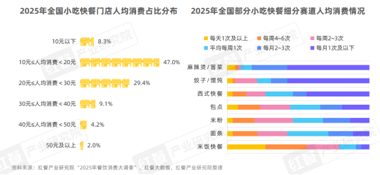 在當前市場大環境下,主打剛需、性價比的小吃快餐更容易形成高頻復購。紅餐產業研究院“2025年餐飲消費大調查”顯示,超過六成的消費者每周至少消費1次米飯快餐、米粉、面條、包子等產品。