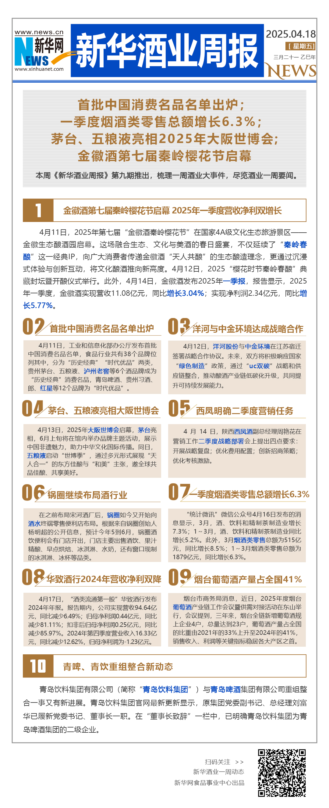 本周《新華酒業周報》第九期推出,梳理一周酒業大事件,盡覽酒業一周要聞。