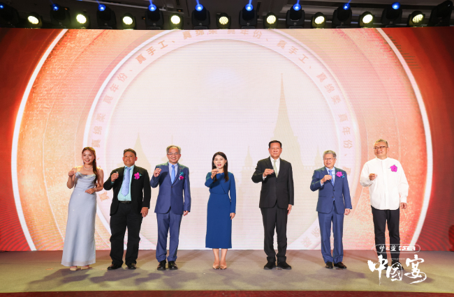 7月22日,由新華網與夢之藍手工班聯合出品,中國旅游協會飲食文化工作部共同打造的國民級美食IP《中國宴》海外首秀——“中國宴”夢之藍手工班全球巡味之旅在曼谷啟幕。來自泰國旅游局、泰國中華總工會、朱拉隆功大學專家學者等50余位泰國政商學界嘉賓以及新華社曼谷分社首席記者林昊、中國旅游協會飲食文化工作部代表杜強、洋河股份品牌文化中心媒介資源部副部長程麗麗等中方嘉賓齊聚現場,沉浸于中華宴席美學中,盛贊節目的精良制作與深厚的文化底蘊。