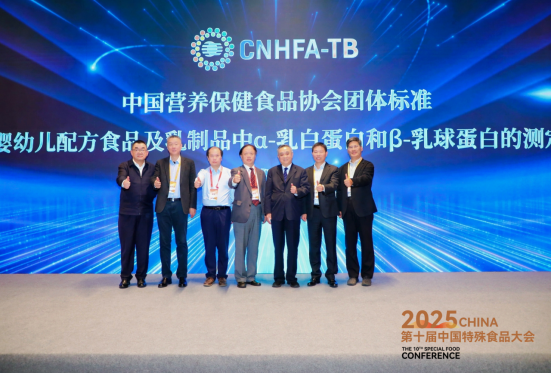 此次會議現場一同見證了“中國營養保健食品協會團體標準——嬰幼兒配方食品及乳制品中α-乳白蛋白和β乳球蛋白的測定”啟動儀式。從嬰幼兒生理需求看,α-乳白蛋白是乳清蛋白中易消化吸收的核心成分,β-乳球蛋白是嬰幼兒乳蛋白過敏的主要過敏原之一,兩種成分的精準測定對嬰幼兒群體尤為關鍵。通過推進相關團體標準的落地,將更好地助力乳制品行業從“合格產品”向“優質產品”轉型,最終保障嬰幼兒健康權益和行業高質量發展。
