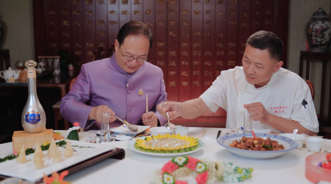“有朋自遠方來,不亦樂乎?!鼻房赘闹扉T內,千年古訓化作餐盤里的溫潤光澤。當新華網與洋河夢之藍手工班聯合打造的《中國宴》第二期踏足儒家圣地,孔府菜的詩禮底蘊與泰國的熱辣風味相遇,在刀工與香料間,鋪就了一條跨越湄南河與黃河的文明通途。