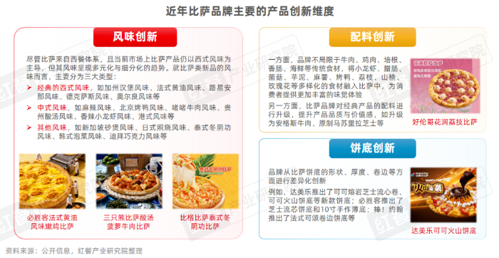 1.比薩品牌的產品創新維度升級,風味、配料和餅底成關鍵創新點