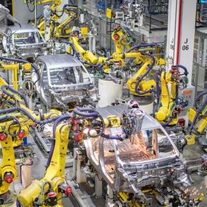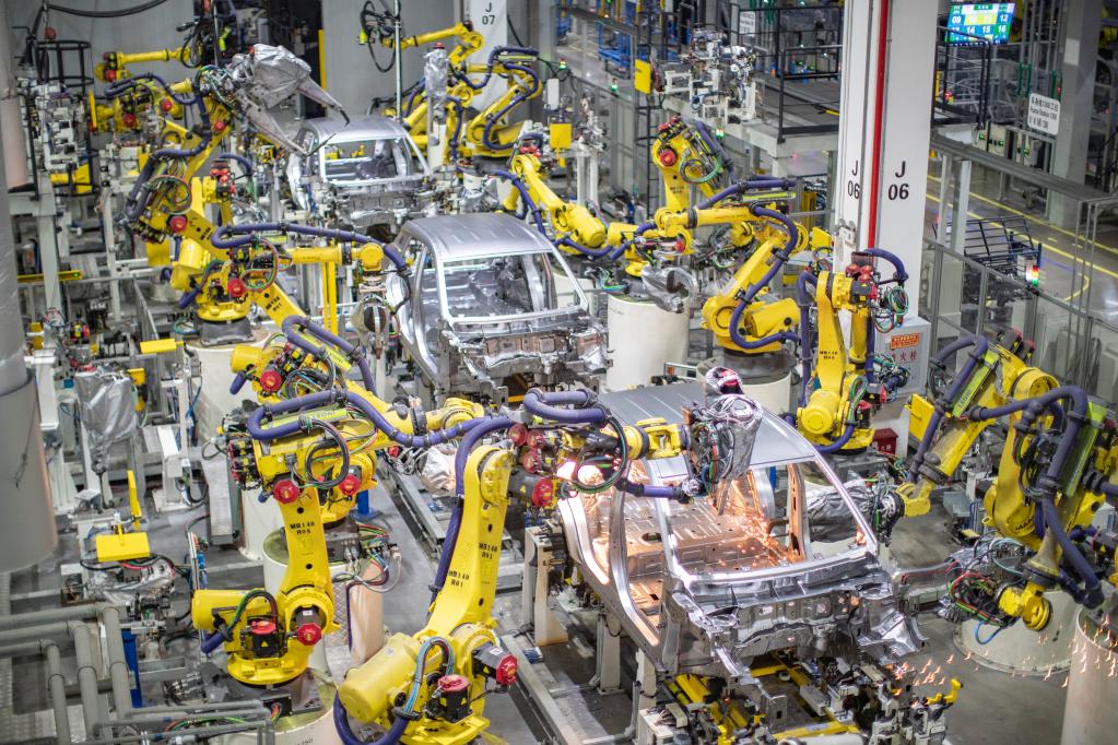 重慶一家新能源汽車企業使用智能化焊接機器人進行焊接作業。新華社記者 黃偉 攝