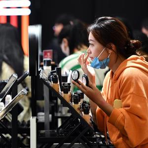 2022年1月3日,顧客在??谌赵聫V場免稅店選購化妝品。 新華社記者 郭程 攝