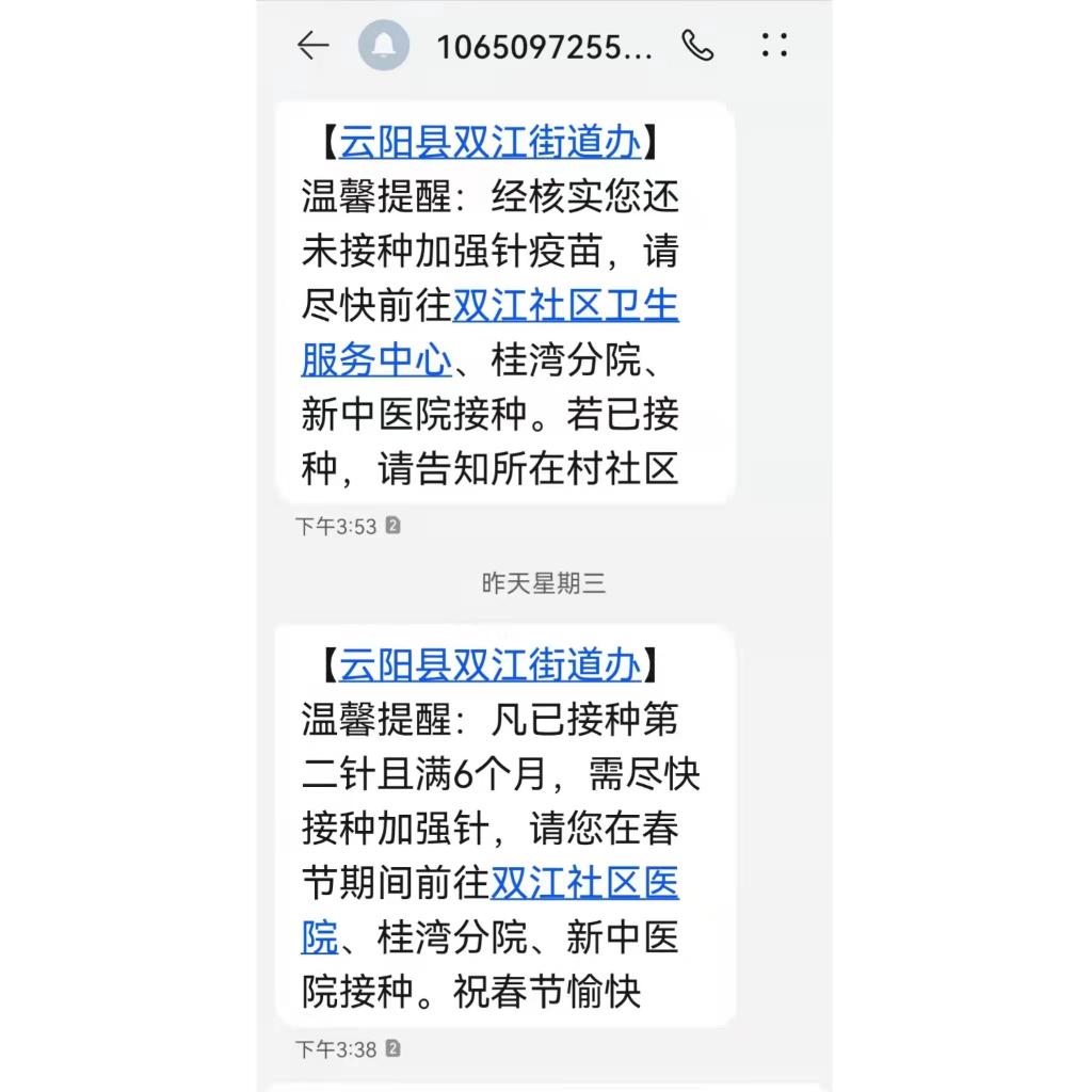 圖為廣州市民陳先生從未去過重慶云陽縣,卻多次收到云陽縣雙江街道辦發來的短信。