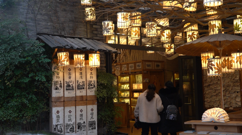 重慶一家手工環保紙紀念品商店吸引了消費者的目光。 新華社發(胡雨婷 攝)