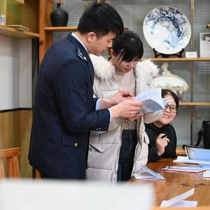 稅務工作人員講解減稅降費政策法規。新華社記者 林善傳 攝