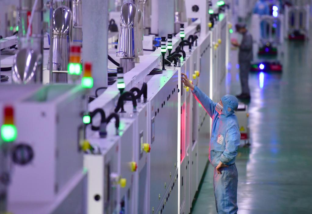 3月25日,工作人員在隆基單晶硅太陽能電池工廠絲網印刷區工作。新華社記者邵瑞 攝