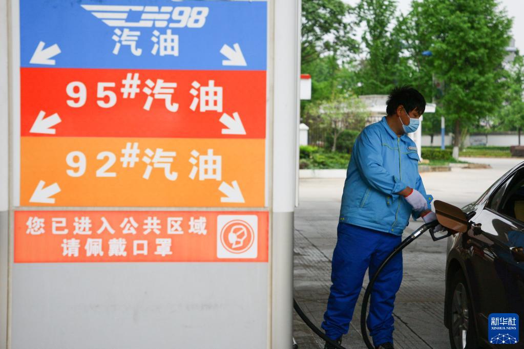 4月15日,在云南省曲靖市,一加油站工作人員給汽車加油。新華社發(楊俊鵬 攝)