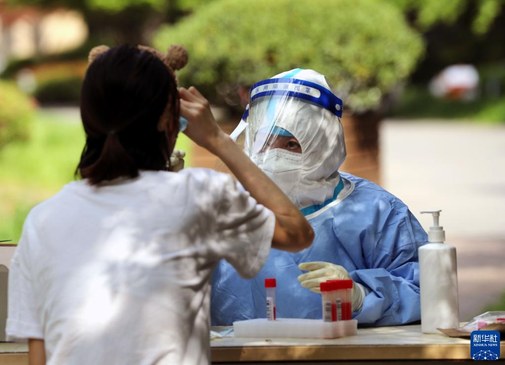 4月12日,在上海松江區一居民小區內,醫務人員進行核酸檢測采樣。新華社記者 劉穎 攝