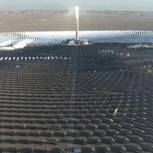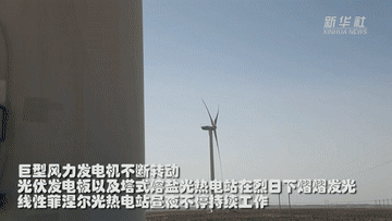 在河西走廊的茫茫戈壁中,一排排巨型風力發電機不斷轉動,光伏發電板以及塔式熔鹽光熱電站在烈日下熠熠發光、線性菲涅爾光熱電站晝夜不停持續工作……
