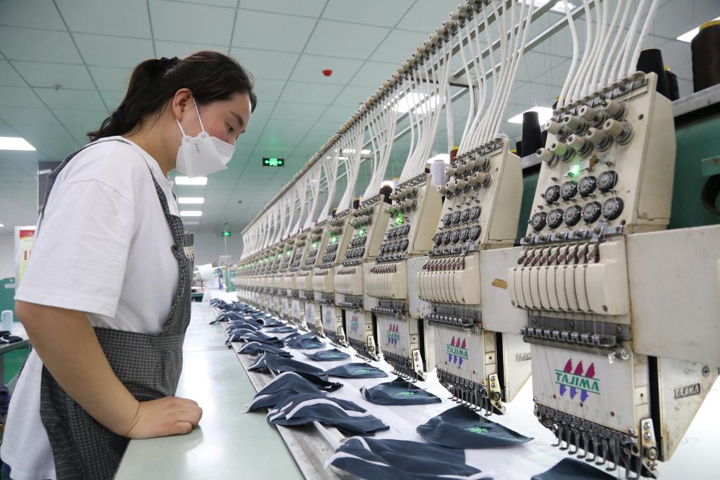 河南淮陽瑞能服帽智能繡花車間。(新華社發)