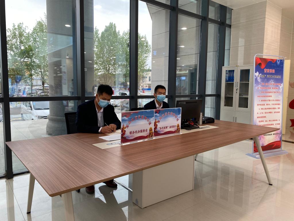 淮陽區營商辦幫辦代辦服務臺。(新華社記者孫清清攝)