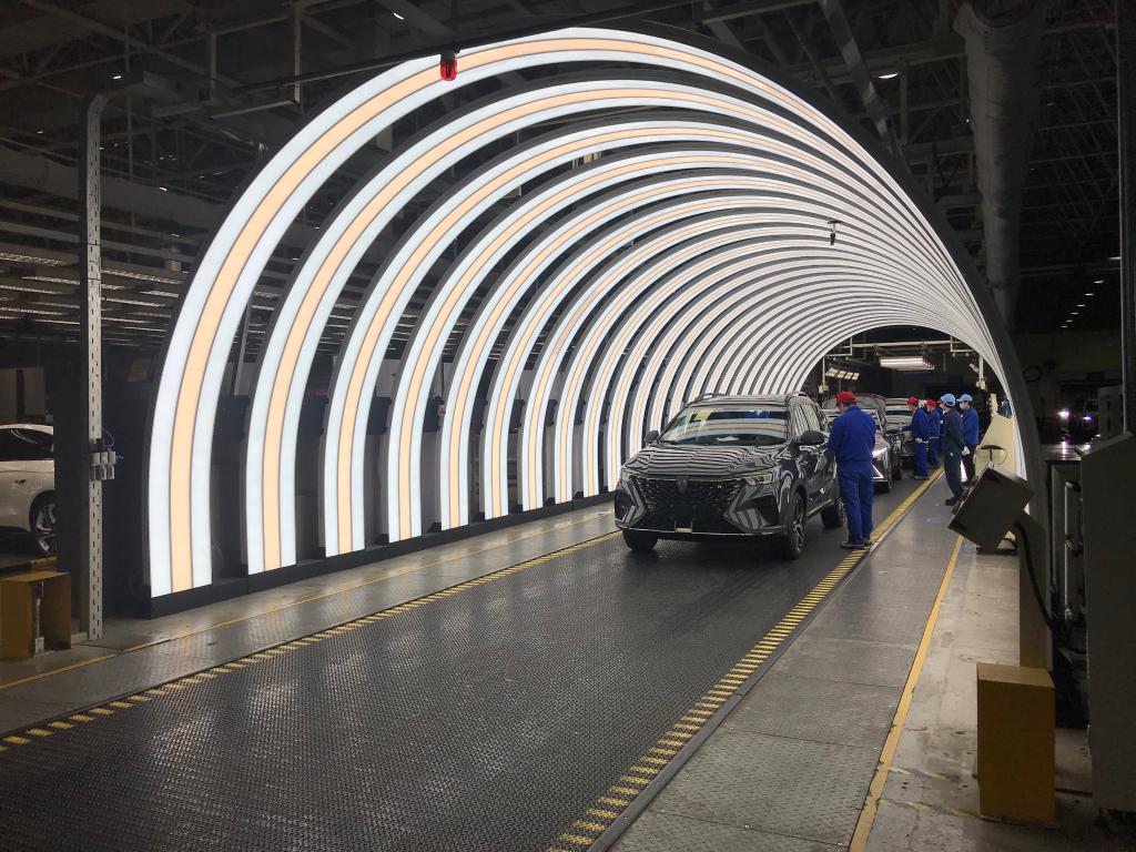 在上汽集團臨港乘用車工廠,一輛輛整車正在下線。新華社記者周蕊 攝
