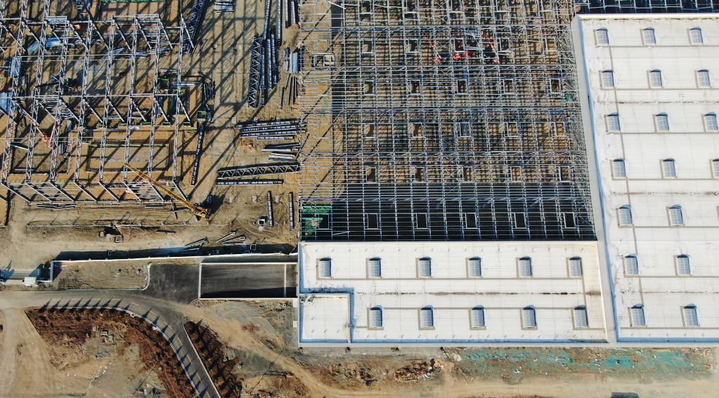 圖為2021年12月28日拍攝的建設中的華晨寶馬鐵西新工廠。(新華社記者楊青攝)