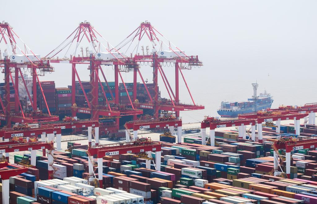 圖為5月17日拍攝的上海洋山深水港四期自動化碼頭。(新華社記者丁汀攝)