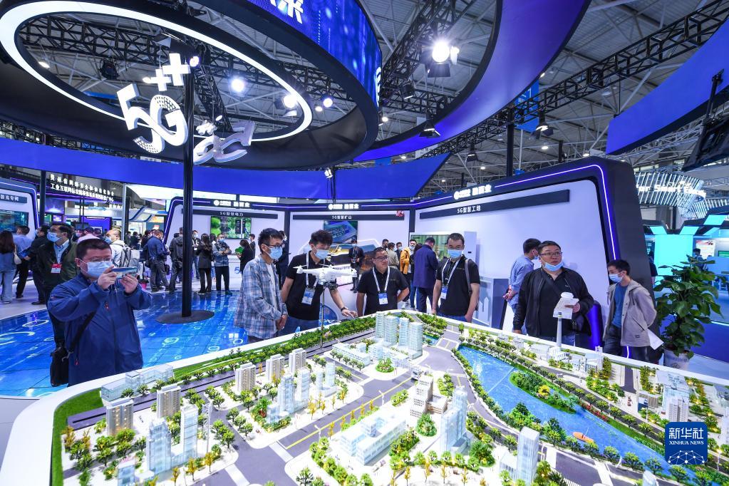 參會者在2021中國國際大數據產業博覽會上參觀5G智慧城市模型(2021年5月26日攝)。新華社記者 楊文斌 攝