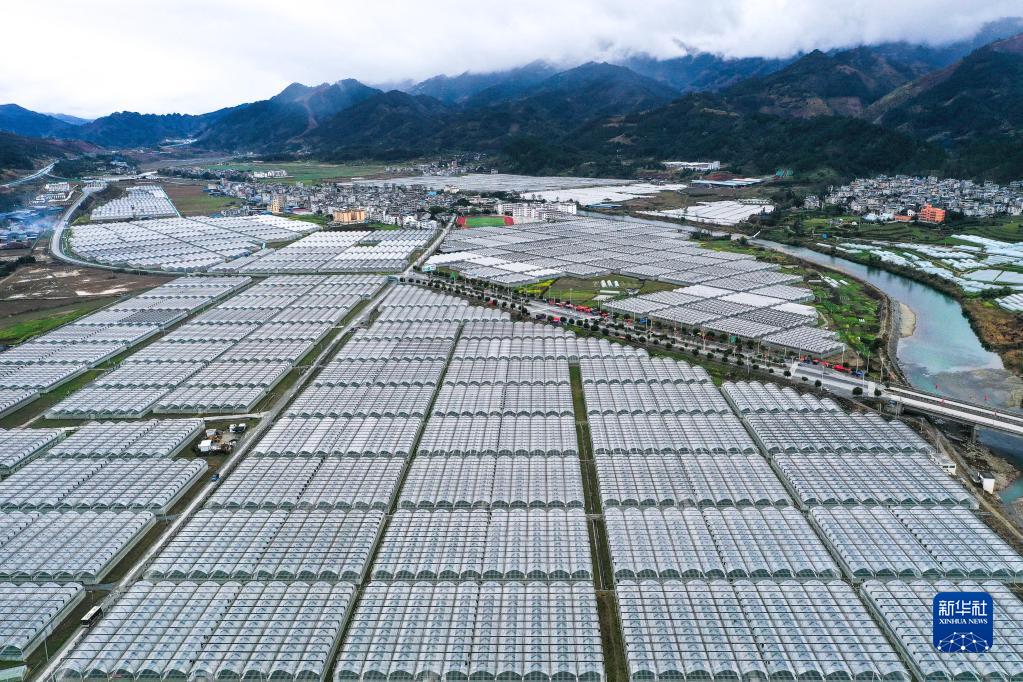 貴州省榕江縣車江壩區的人工智能調控大棚蔬菜種植區(2月18日攝,無人機照片)。新華社記者 楊文斌 攝
