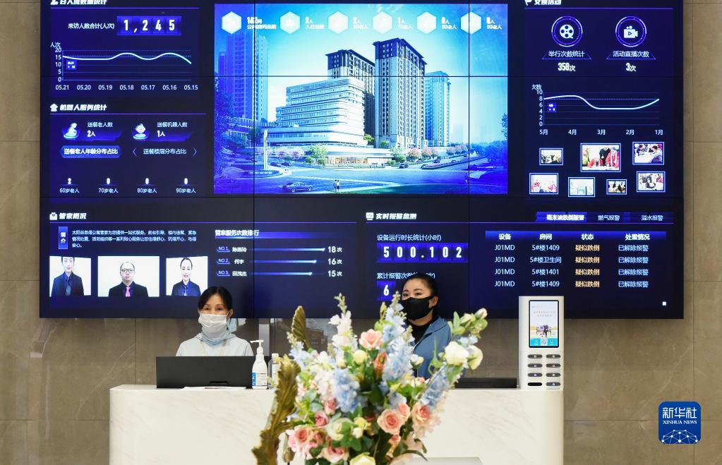 貴州省龍里縣中鐵國際生態城太陽谷5G全感知智能康養社區內的養老可視化平臺在運行中(5月23日攝)。新華社記者 劉續 攝