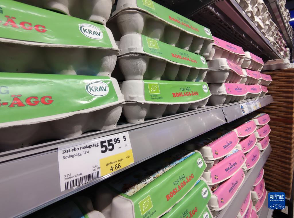這是4月14日在瑞典斯德哥爾摩一家超市內拍攝的雞蛋?!⌒氯A社發(魏學超攝)