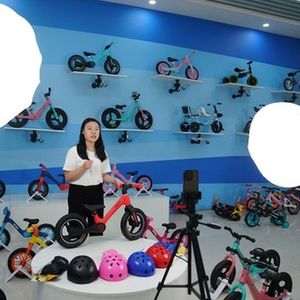 在河北童車玩具供應鏈直播基地,主播在直播銷售童車(新華社發)