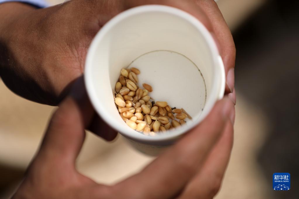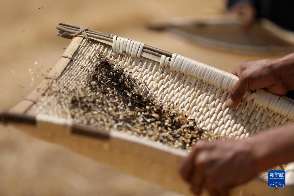 6月2日,在山東省臨沂市郯城縣郯城街道,裁判組工作人員揚去雜質提取麥粒,測算減損率。新華社發(張春雷攝)