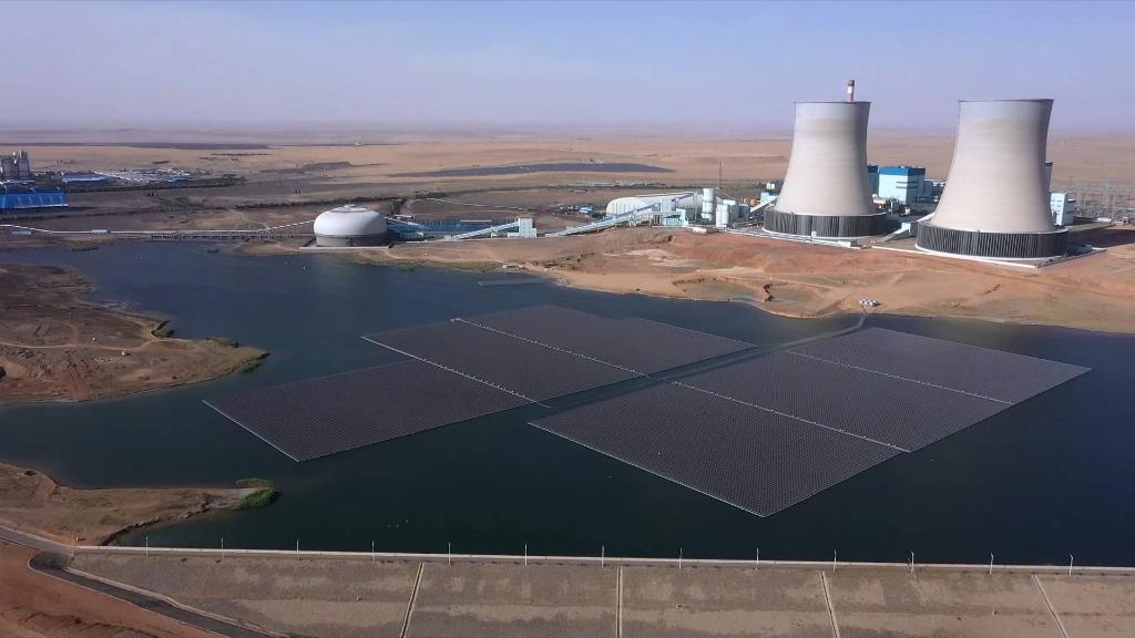該項目利用礦井疏干水聚集湖的湖面進行建設,是西北首個水面漂浮電站、中國首個礦井水水域漂浮電站。