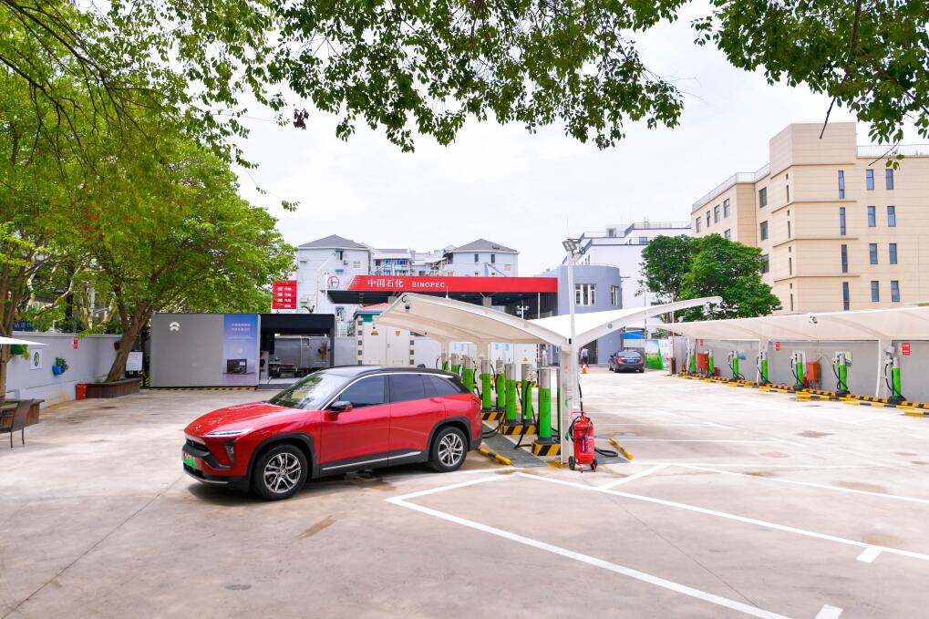 上海市靜安區中山北路上,中國石化與蔚來合作的一座換電站。(受訪者供圖)