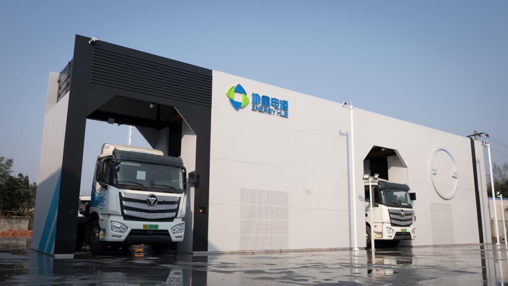 協鑫電港位于成都的首座自主研發的雙通道重卡換電港。(受訪者供圖)