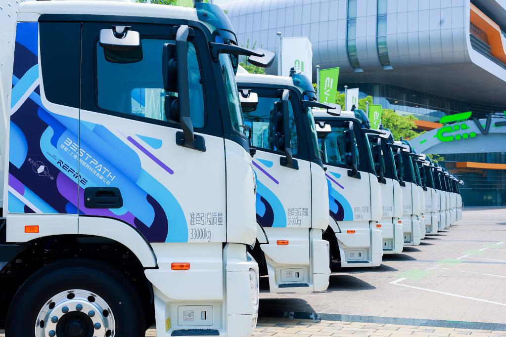 ——新賽道產業集群效應初顯。7月底,60輛嶄新的重型卡車在上海國際汽車城一字排開等待發車,這批42噸的重型卡車“喝氫吐水”,不產生尾氣。