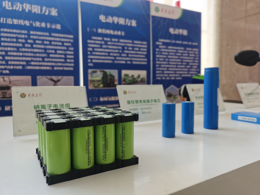 圖為華陽碳谷中展出的鈉離子電池。新華社記者梁曉飛 攝