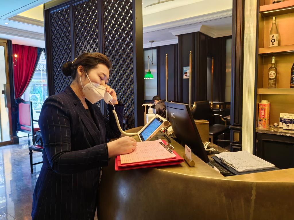 “城南往事”工作人員接聽顧客預訂電話。新華社記者 陳國峰 攝
