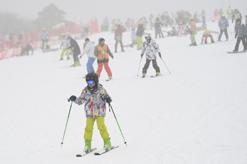 在浙江省安吉縣山川鄉云上草原滑雪場,雪道上不少人疾馳而過?;﹫鲐撠熑嘶莘辶纸榻B,元旦假期日接待游客約3400人,“近期我們推出沉浸式古風冰雪展,效果很好。大家對冰雪項目的熱情也被點燃了?!?/p>