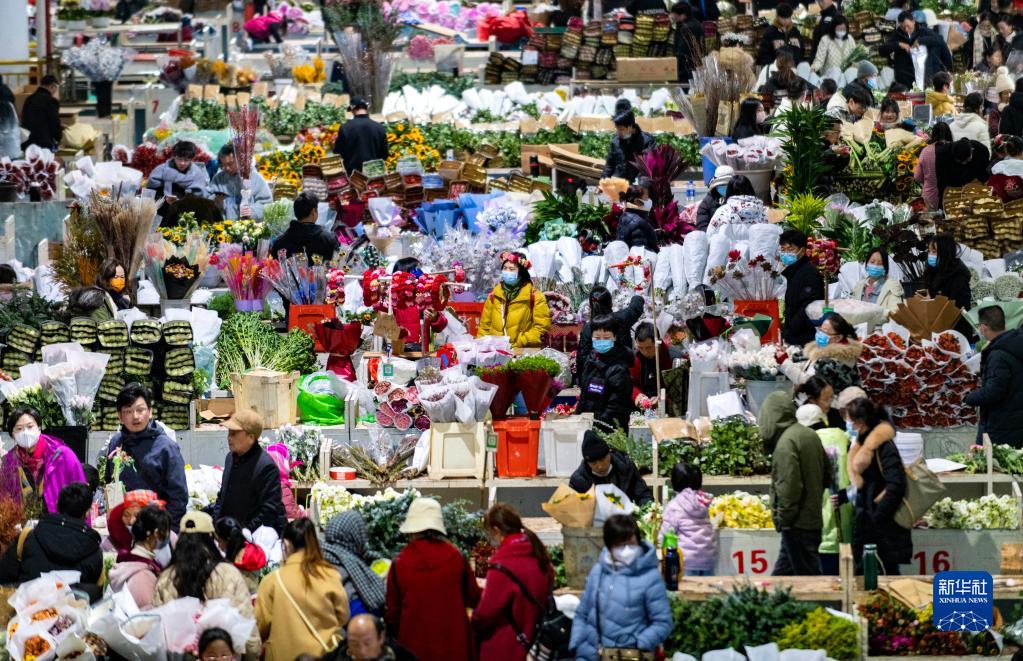 1月27日,人們在斗南花市內買花。當日是大年初六,位于云南省昆明市的斗南花市內人頭攢動,人們逛花市、買鮮花,歡度假期。新華社記者 陳欣波 攝