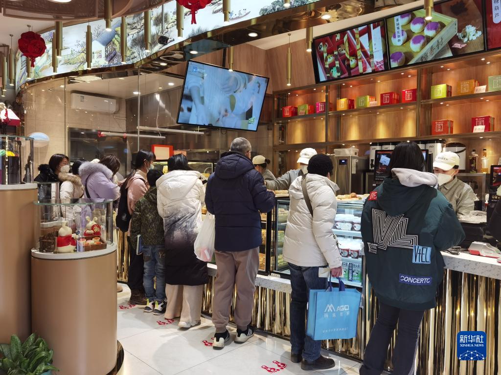 早晨8點剛過,北京稻香村“零號店”門口已排起七八米長隊。店里新上的“福兔獻瑞”系列兔年糕點,手工鮮做、門店現烤,來晚了就沒有了?!颁N售的火爆程度超乎我們預計,今年開年以來整體銷售額同比增長了近40%,已經恢復到2019年的水平?!北本┑鞠愦甯笨偨浝碛岽笾握f。