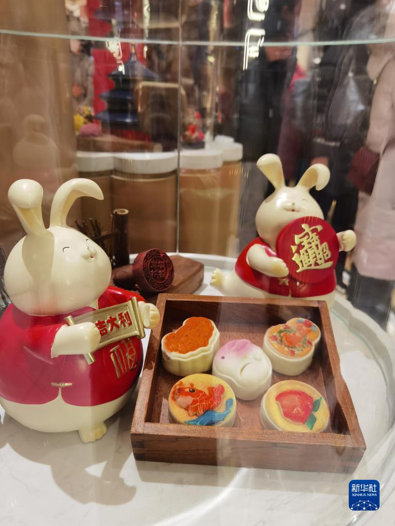 2月1日在北京稻香村“零號店”拍攝的“福兔獻瑞”系列糕點。 新華社記者 謝?,?攝