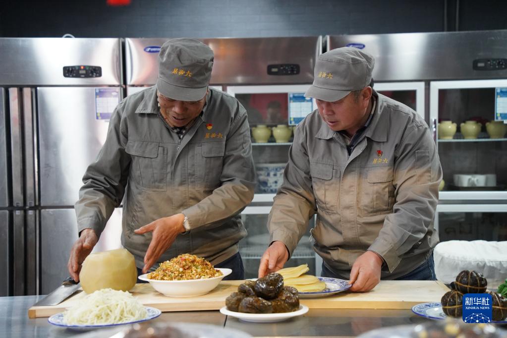 1月31日,醬菜師傅在北京六必居加工車間演示醬菜制作技藝。 新華社記者 魏弘毅 攝
